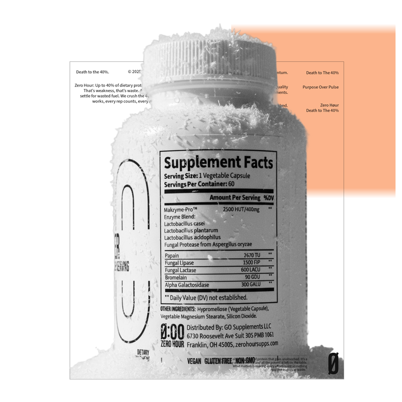 Alpha Galactosidase: Carbohydrate-digesting enzyme that reduces digestive discomfort, supporting a healthy gut environment for protein absorption.